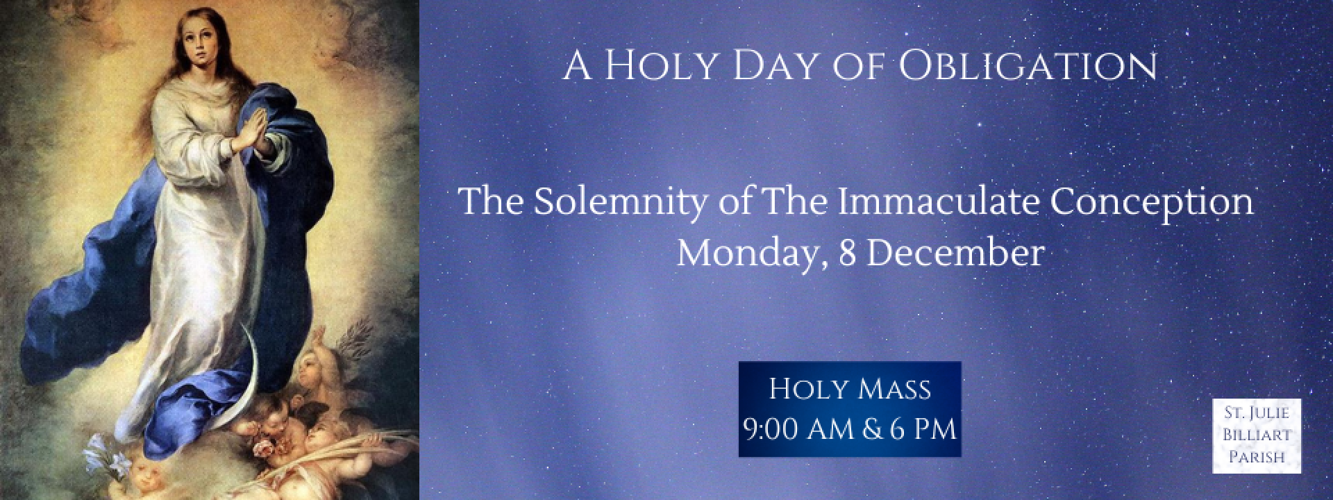 Daily Mass (Mon- Thurs & Sat): 9:00am; Friday 6:00pm